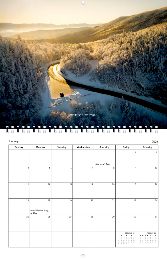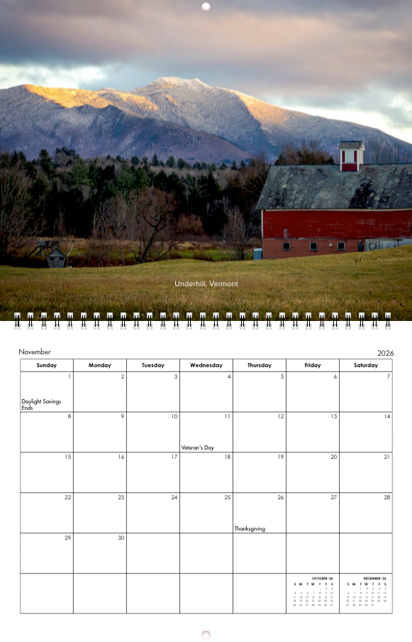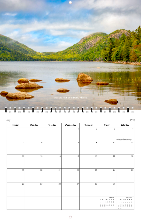 Explore the natural beauty of New England, and beyond, with my 2026 photo calendar. It features 14 original landscape photographs captured across Northern New Engalnd, Canada and Europe. Each month highlights a favorite scene from my adventures, like misty mornings on the lake, dramatic mountain peaks, sunlit coastlines and colorful fall forests.