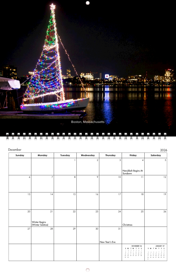 Calendars ship in batches beginning in November. Order by December 1st for holiday delivery.